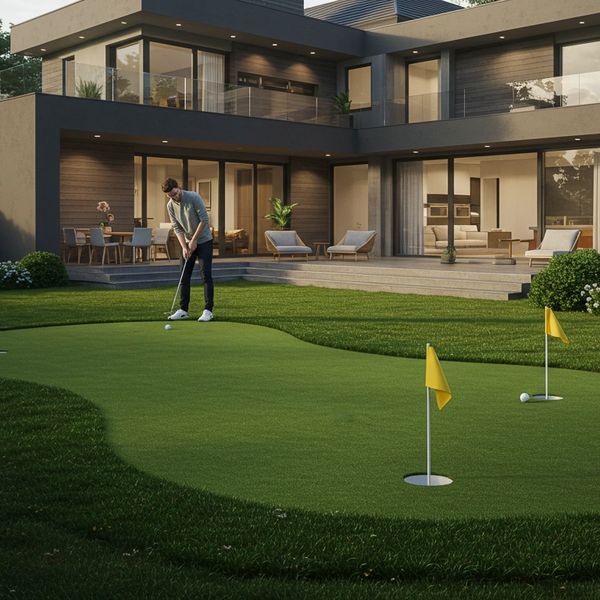 Artificial turf is ideal for backyard putting greens due to its low maintenance, durability, and consistent playing surface. It provides a smooth, even surface that mimics the look and feel of professional golf courses, ensuring an optimal practice environment. We design and build custom putting greens for clients who want to enjoy the game of golf in the comfort of their own backyard. Our team of experts will work with you to create a unique and personalized putting green that perfectly fits your space and your needs. Its durability allows it to withstand heavy use and various weather conditions without deteriorating, making it a long-lasting investment for golf enthusiasts.
